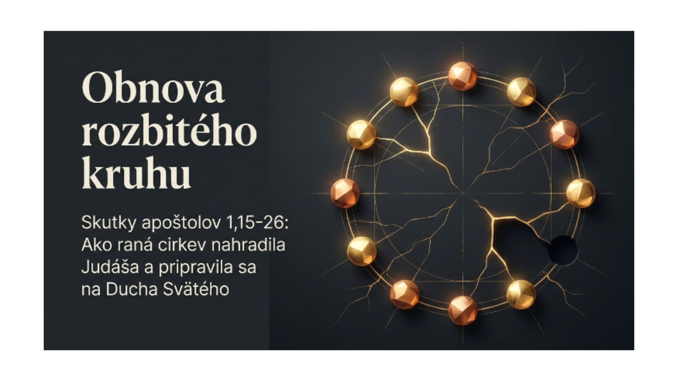 Prednášajúci, biblista Matej Horník  vo svojom príhovore sprevádzal účastníkov webinára vybranou kapitolou Skutkov apoštolov – Sk 1,15-26, ktorá krásne ilustruje reakciu kresťanskej komunity na skutočnosť Judášovej zrady a následne na potrebu komunity nahradiť jeho miesto medzi apoštolmi. Na Judášovo miesto teda musí prísť niekto iný. Kto? A prečo?